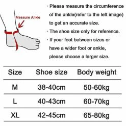 Product descriptionSize: M, L, XLColour: BlackMaterial: polyester fiberPackage content: a pair of sports ankle protectors1.Protect & Reduce Risk of Ankle Brace InjuryAnkle brace provides stability and support for ankle tendons and joints, reducing the risk of injury. Ankle support wraps your feet with just the right amount of compression to helps improve blood circulation and provide pain relief from heel spurs, Achilles heel, plantar fasciitis, tendonitis, and other foot-related discomforts2.Premium Breathable Elastic MaterialAnkle brace made of breathable SBR fabric is soft and lightweight. The meticulously made elastic ankle support is slim fitting and comfortable. And ankle brace is sweat-wicking to keep feet dry.3.Non-Slip & Stable DesignAnkle support with open heel support full range movement and flexibility. And the ankle brace has external non-slip silicone gel to add grip to hold the ankle in place to prevent sliding hence minimizing the risk of an ankle injury and sprains.4.Adjustable Ankle Brace with Perfect SizesAnkle brace has a strong velcro criss-cross reinforced design that allows the user easy to adjust the ankle support to fit the foot better. The ankle support has 4 sizes for teens to adults. This ankle stabilizer is comfortable enough to be worn at any time, lightweight and fits in all shoe styles.5.Versatile And Comprehensive Ankle Brace StrapAnkle support is an innovative gear to protect ankle during sports. The ankle support brace is primarily produced as a preventative brace strap for any sporting activities such as intensive exercise, running, soccer, weightlifting, hiking, basketball, tennis, cycling, climbing other physical activities.