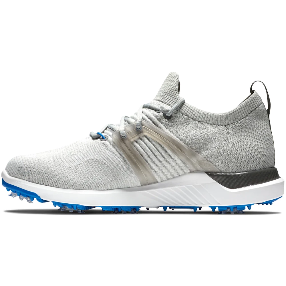 Built on the Laser Sport Last the Hyperflex has a full rounded toe character, standard fit across the forefoot and instep and a slightly narrow heel, with added toe spring providing a more athletic profile. FootJoy’s revolutionary PowerHarness wraps your foot in comfort and releases power into your golf swing. The engineered mesh uppers with TPU yarns provide enhanced structure and support and are completely waterproof, offering a 1-year waterproof warranty.