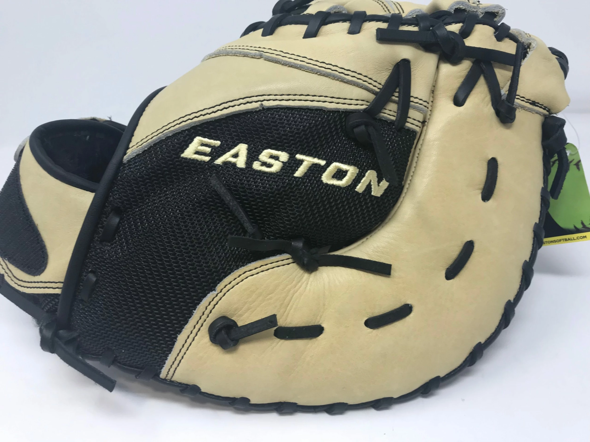 This is a New Natural Elite, Made for Fastpitch softball use, this is a nice quality Easton glove! It’s a Left hand throw, has narrower finger stalls, soft/oiled pro quality leather and lace. All around a great choice! First base glove with a 13″ size!