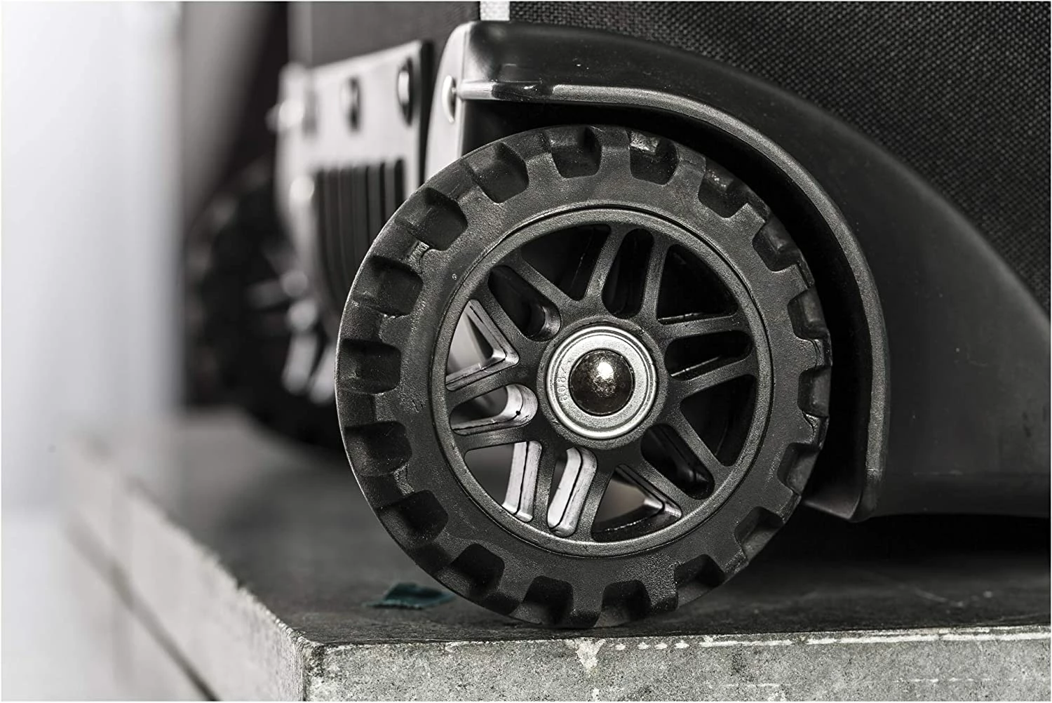 Rugged, Oversize wheels provide stability on any surface