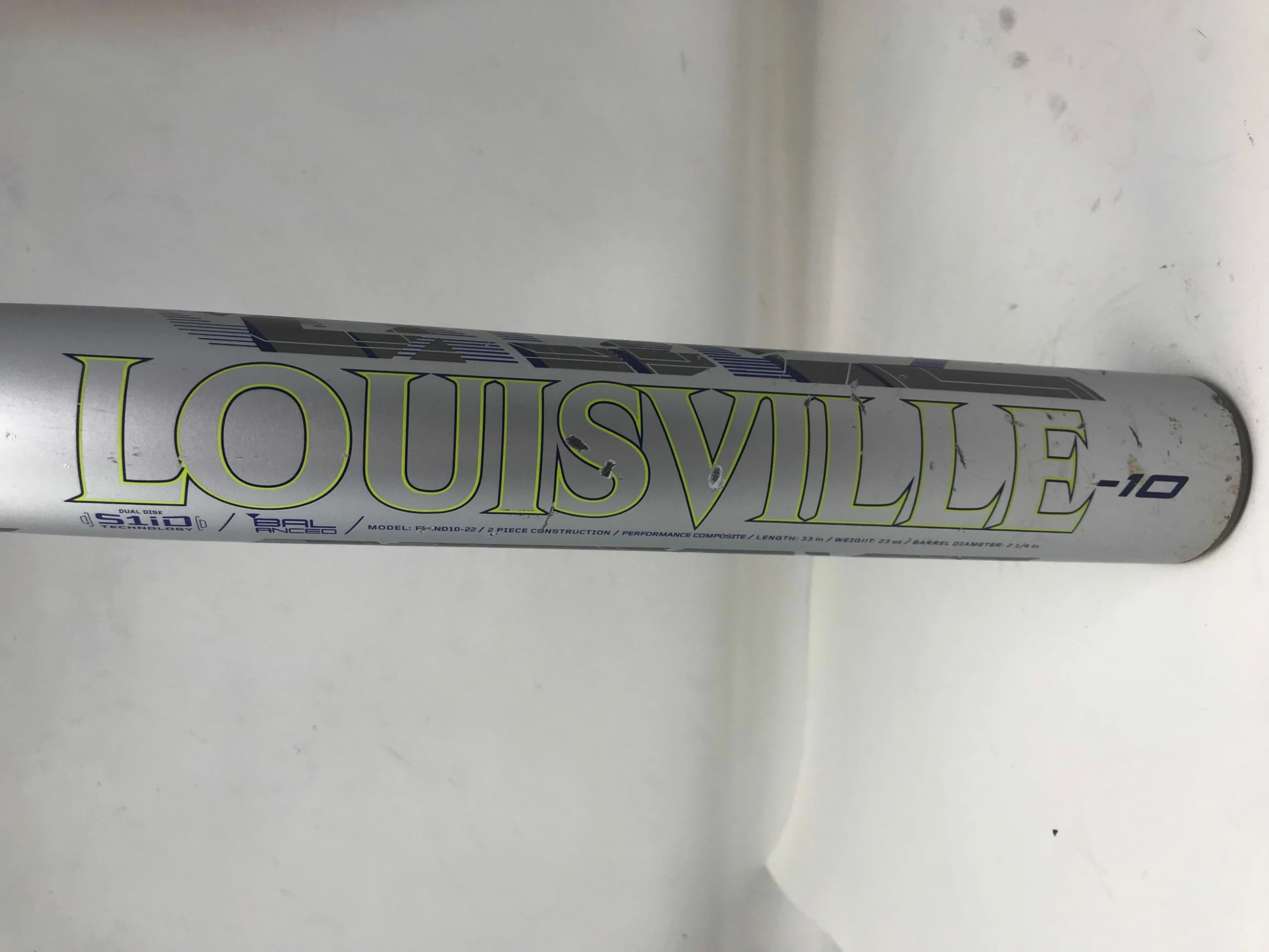 SKU: 7920917676286 Category: Bat Tags: -10, 2 1/4", 2022, Composite, Condition: Used, Fastpitch, Feed-cond-used, Silver/Purple/Yellow, Size: 33/23, Softball, USSSA 1.20 BPF Stamp